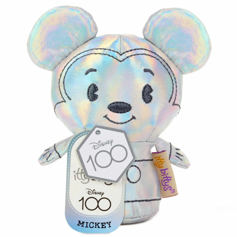 - itty bittys Disney Mickey Mouse plush is crafted from iridescent fabric with embroidered accents and features a commemorative Disney 100th Anniversary patch on the bottom.