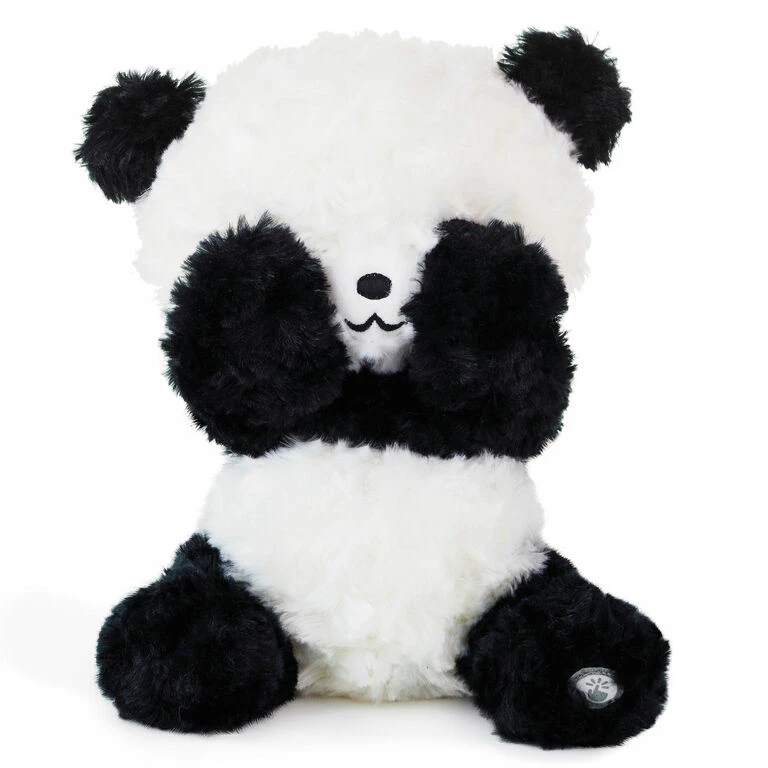 - Press the button to start a cuddly peek-a-boo game with the panda as he says 5 cute phrases.